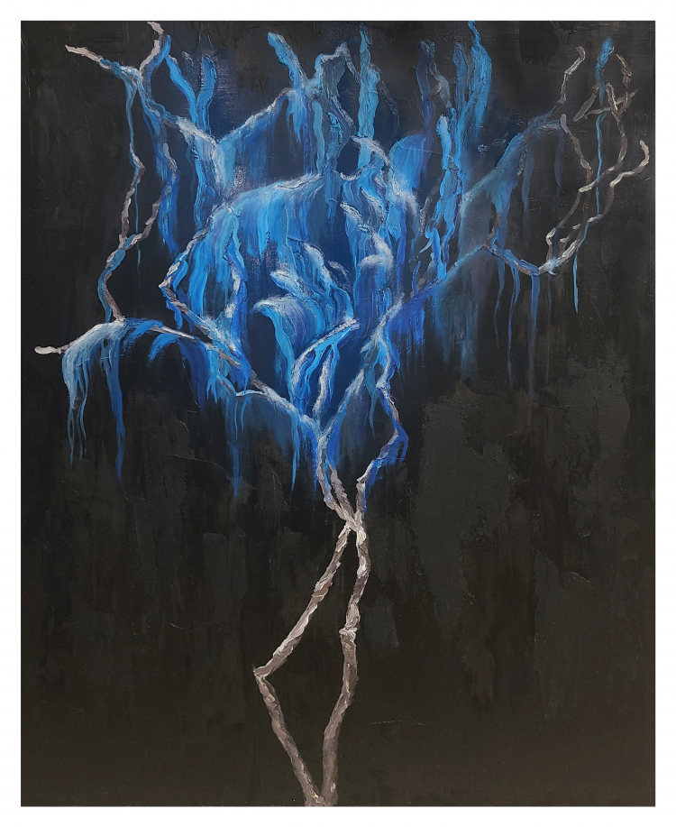 말은 침묵 속에, 빛은 어둠 속에, 삶은 죽음 속에, 90.9x72.7cm, Mixed media on canvas, 2021.12.9